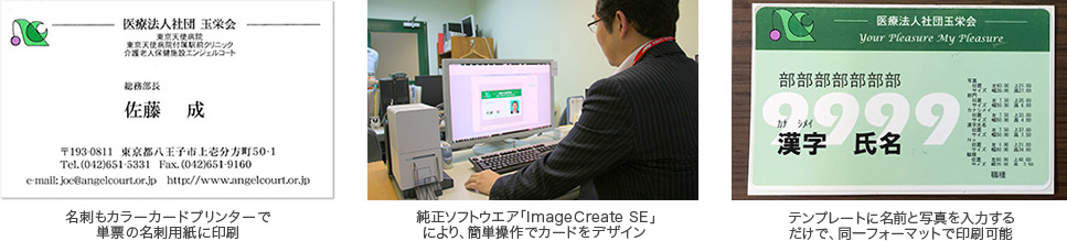 東京天使病院を中核として東京都八王子市で医療や介護事業を展開している医療法人社団玉栄会では、医師や職員がICカード型職員証をつねに携帯している。しかし、病院では職員の入れ替わりが多いため、その都度新しいICカードに更新していたのでは多額の費用がかかってしまう。そこで、PET素材の光沢シール紙にも印刷ができるカードプリンターを導入し、名前と写真を印刷した職員証シールを貼り替えることでICカードをリユース。さらに、名刺や職員駐車証の印刷にも利用している。そこで、カードプリンター導入の経緯と成果を、総務部長の佐藤成氏に伺った。