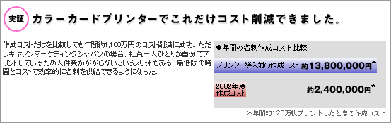 キヤノンマーケティングジャパンでは社員のデータを総務で一括管理しているという。「作成のときはデータを呼び出すだけ。つまり誰でも手軽にプリントできるというわけです。」