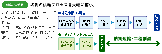 「今では必要な分だけつくって渡せばいいので、廃棄する名刺の量がグッと減りました。」とカードプリンターの導入効果に自信を深めたようだ。