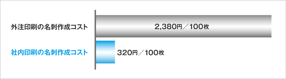 同社の名刺印刷は年間約1万3千枚。外注だと1枚当り23.8円のコストがかかっていたが、カードプリンターならインク・紙代込みで3.2円。機器のリース代を差し引いても、年間約15万円の印刷費が節約できることがわかった。これなら初期投資も不要で、すぐにコストメリットが実感できると斎藤さんは考えたのだ。「それまで名刺の社内印刷なんて考えたこともありませんでしたが、外注は割高だったんですね。このプリンターとの出会いがそこに気づかせてくれました」。
