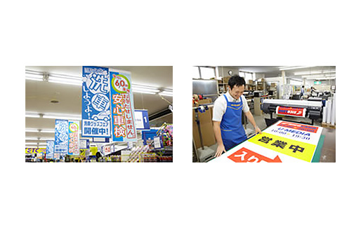 プリンターとともに注目したのが、ラミネート加工なしで最長6カ月の屋外掲示が可能な「キヤノン耐水ポスター合成紙」でした。「ロードサイド店舗の展開を強化している当社にとって、短納期・低コストで屋外掲示できるポスターが制作できるのは魅力的でした」と黒澤氏。実際にポスターを制作したところ、店舗のスタッフでもB1サイズのポスターをきれいに貼ることができたとのこと。