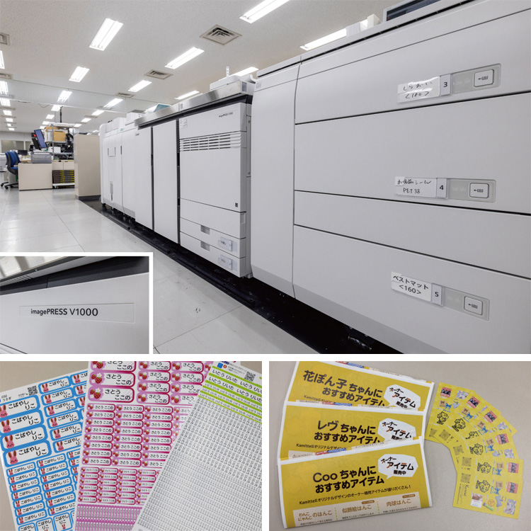 いま弊社の経営陣が注目しているのは、大ロットの情報印刷から、小ロット多品種に対応した「生活印刷」へのシフトです。情報印刷はデジタル化によりタブレットやスマホに置き換えが可能ですが、暮らしに身近な生活印刷の需要は、今後も拡大していく可能性が高いでしょう。その一例が、弊社がECで扱うパッケージやお名前シール、名刺・封筒、ポストカード類などの商品群です。従来の情報印刷のみならず、生活に密着した印刷物の世界にさらなる成長への商機を見出したい。小ロットから大ロットまでバリアブルに対応し、高品位で安定的な製造を可能にしてくれるimagePRESS V1000や、キヤノンの製品展開に期待しています。