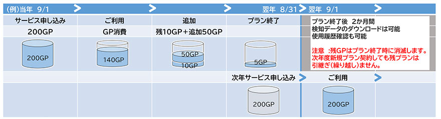 | 追加プラン | 200GPプラン | オープンプライス | 申込時、もしくは残GP量が少量になった場合、基本に追加。利用期限は基本プランに準拠 |
