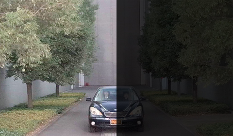 画素部および読み出し回路に独自技術を搭載した35mmフルサイズ約226万画素CMOSセンサーにより、最低被写体照度0.0005ルクス※1(最大ゲイン※275dB時、ISO感度400万相当)の超高感度と低ノイズを両立し、星明かりなどの非常にわずかな光源だけで被写体を認識できます。