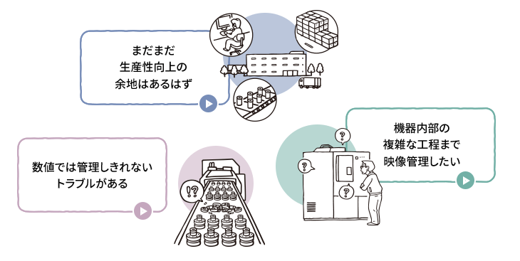 そこで着目されているのが、映像による製造現場の見える化です。本来、防犯目的で生まれた監視カメラでしたが、性能の向上や周辺技術との連携でその役割が様変わり。セキュリティの監視以外にもさまざまなシーンで利用の幅が広がりました。