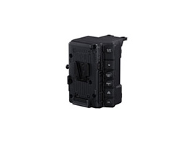EOS C500 Mark IIにジョイスティックなどの操作機能*1、同期用端子*1、リモートコントローラー接続用端子(丸形8ピン)*1、ネットワーク(Ethernet)端子*1、オーディオ系機能(端子と入力切り換えスイッチ)*2、レンズ通信端子*2、外部出力電源端子*2を拡張する専用ユニット。