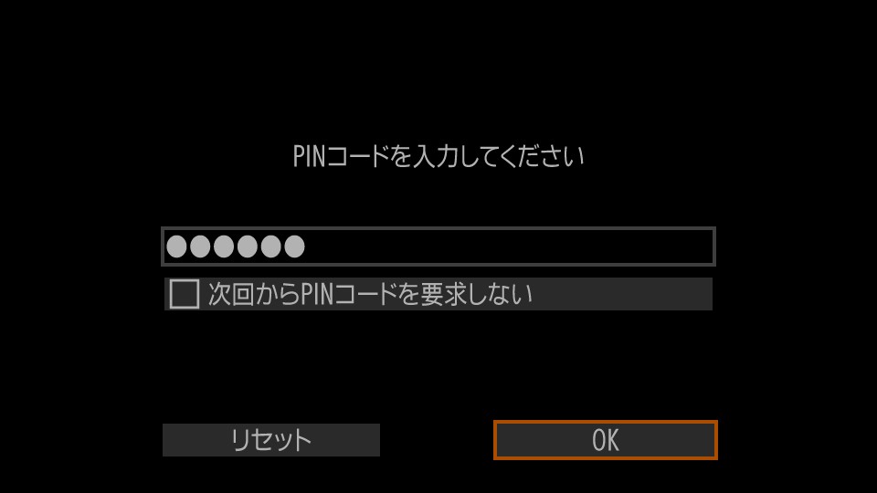 6桁の数字を入力し、<MENU>ボタンを押します。