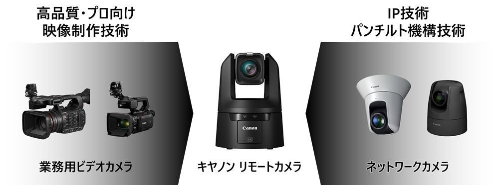 キヤノンのリモートカメラには、業務用ビデオカメラの画質や映像制作技術とネットワークカメラで培ったIP技術を搭載しています。