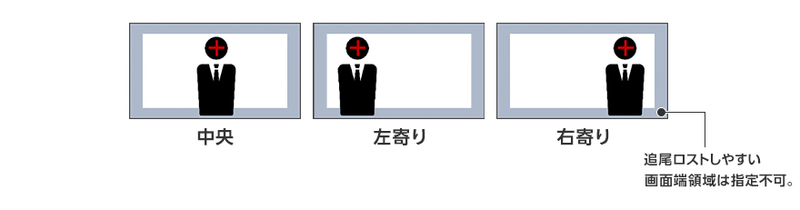 画面内の追尾対象を表示する位置を指定し、指定した位置でパン・チルト追従します。