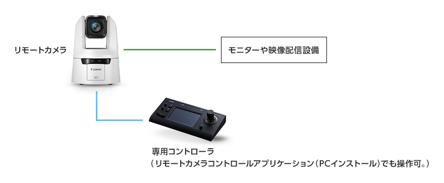 - カメラから離れた場所で、簡単にパン・チルト・ズームなどカメラ操作ができます。