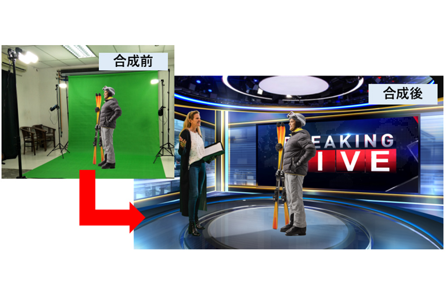 現在の放送スタジオやスポーツ中継などで使用されるバーチャル映像は、グリーンバックで撮影した被写体にリアルタイムにCGを合成したり、実撮影に対して3Dグラフィックスを重畳する技術が使われています。
