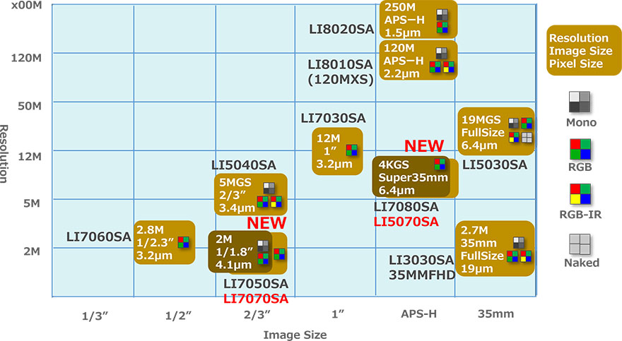 | LI5030SA | Global | 35mm Full Size | 19M | 6.4 | Mono RGB RGB-IR Naked |