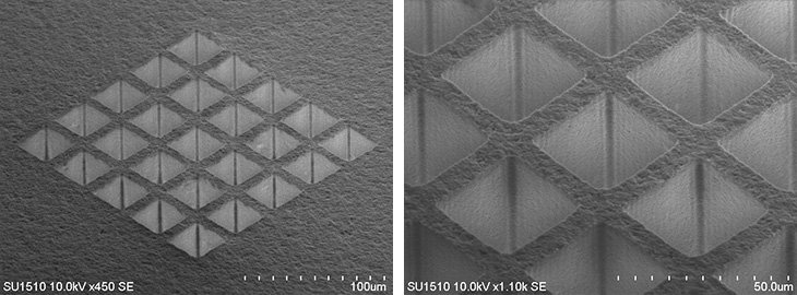 | 加工条件 | 四角穴:30μm × 30μm 穴の壁厚:10μm |