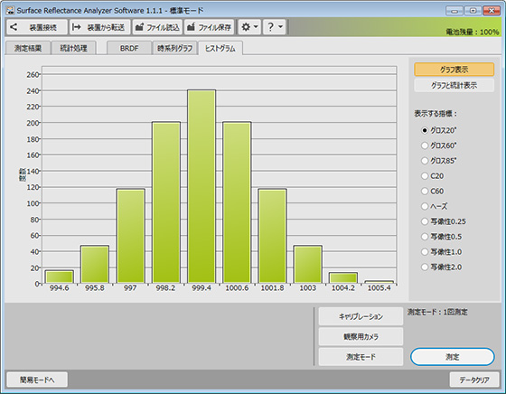 例:各指標の測定、1次元/2次元BRDFの表示、データの読み込みおよび統計処理、グラフ表示 etc.