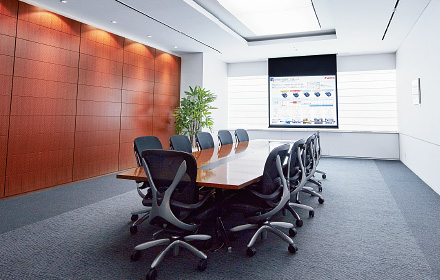 スクリーンに対して上下や斜めヨコの位置からの投写でも、投写映像を見やすい四角形に補正します。