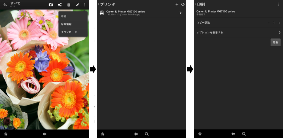 - 印刷したい写真を選び、メニューから「印刷」を選択
