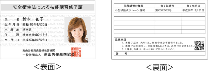 下記の[技能講習修了証サンプル画像]を印刷した場合