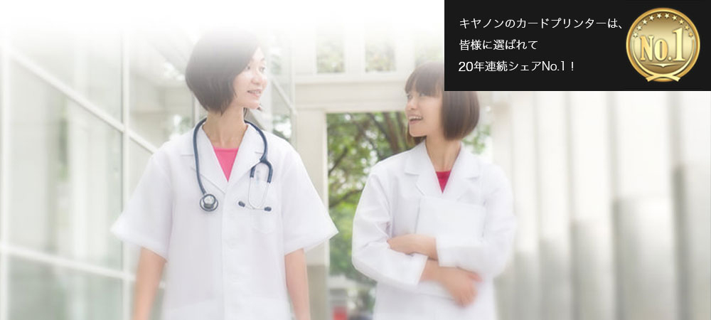 キヤノンのカードプリンターなら、1枚目の印刷が7秒以内で完了するので、初診の患者様の来院が重なっても、お待たせせずに印刷ができます。