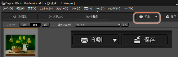 Digital Photo Professional 4.9.20以降で、Professional Print&Layoutとソフトウェア連携が可能になります。ツールバーの「印刷…」ボタンのクリックで直接Professional Print&Layoutを起動することができ、スピーディな作業が可能です。