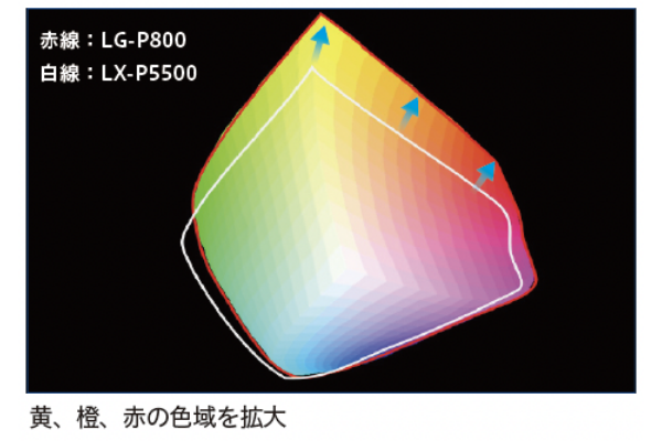 新開発の顔料インクを搭載することで黄、橙、赤の色域が拡大し、購買意欲や商品イメージに直結する飲料・食品・化粧品などの商品ラベルを鮮明かつ高精細に印刷可能です。またマット紙・合成紙・光沢紙・光沢フィルムなど、多様なメディアへの印字適性にも優れており、幅広い用途に対応可能です。