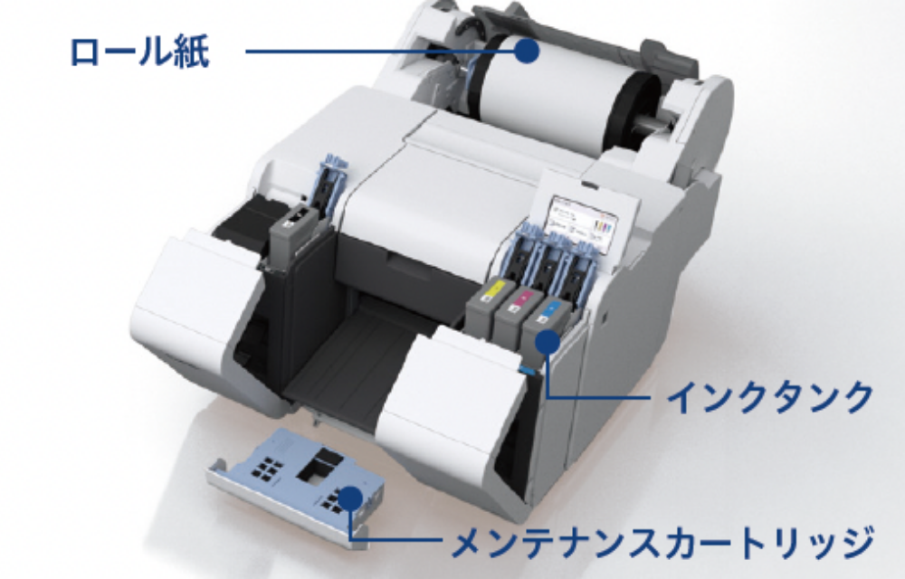 交換頻度が低減できる各色独立型の300ml大容量インクタンクを搭載。また、 印刷中にインクタンク内が空になった場合でも、一定量のインクが蓄えられているサブインクタンクから自動供給を行うことで、印刷しながらインクタンクの交換が可能です。印刷中断によるダウンタイム発生を防げるほか、インクを最後まで使い切ることが容易となりコスト削減にも貢献します。