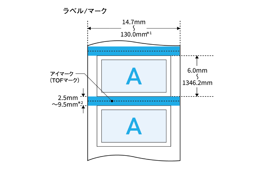 ラベル長さ10mm以下の場合、6.5~9.5mmとなります。