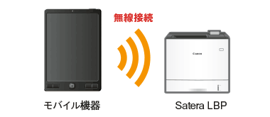 ダイレクト接続は、サテラLBP本体とモバイル機器の1対1での接続となります。最大5台まで接続できます。