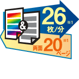 26枚/分※1の高速プリントカラー・モノクロ同速26枚/分※1、両面20ページ/分※1を実現。大量出力も、急ぎの業務も速やかに対応します。