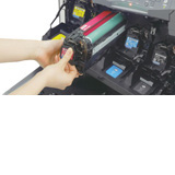 ISO/IEC 19798に基づき、A4普通紙に片面連続印刷した場合のトナーカートリッジの印刷可能枚数(大容量使用時)、および、弊社評価基準に基づいて印刷した場合の回収トナーボックスの印刷可能枚数より算出。