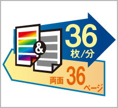 カラー・モノクロ 毎分36枚の高速印刷コンパクトなサイズながら、カラー・モノクロ毎分36枚(片面印刷)のスピードを実現。両面印刷も生産性100%の36ページ/分。枚数の多い印刷業務にもスピーディに対応。