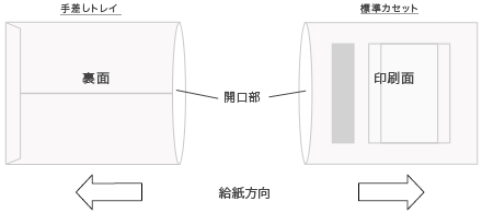 標準カセットを使用する場合、薬袋開口部を給紙方向とは反対(向かって左)に向けて、印刷面を上にしてセットします。