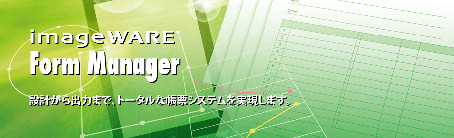 緻密なレイアウト、多彩な入力データへの対応、使い勝手の良いインターフェース、美しくて早いオーバーレイ印刷、そしてさまざまなシステム環境へ対応できる柔軟性。あらゆる企業のニーズに対応した帳票システム、imageWARE Form Managerです。