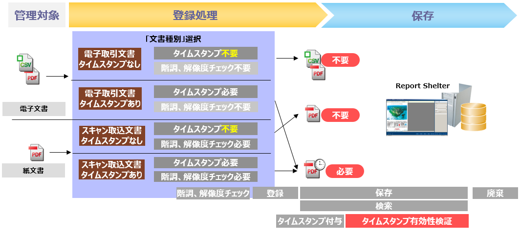 電子取引要件への対応 ~文書種別に応じた登録後の処理が選択可能~