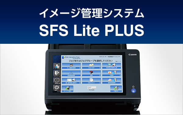 本ソリューションでは、キヤノン製スキャナー(ScanFront400、DRシリーズ)とイメージ管理システム(SFS Lite PLUS)を連携。