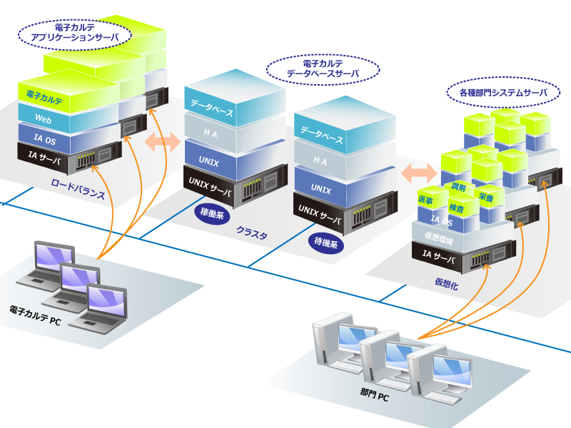 病院情報システムの安定的な運用に不可欠となるITインフラ(基盤)を構築するソリューションをご提供します。