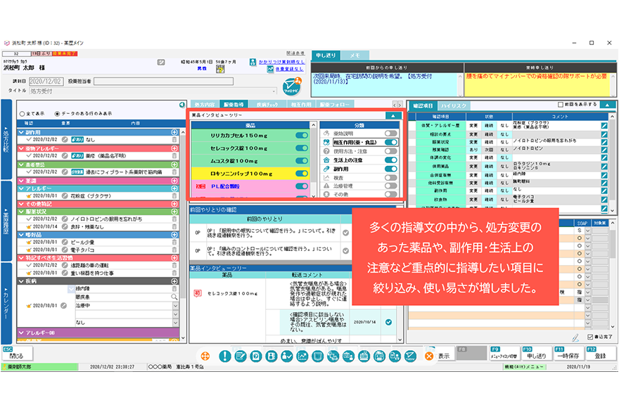 薬剤別服薬指導ガイダンス(インタビューツリー)の操作性を向上