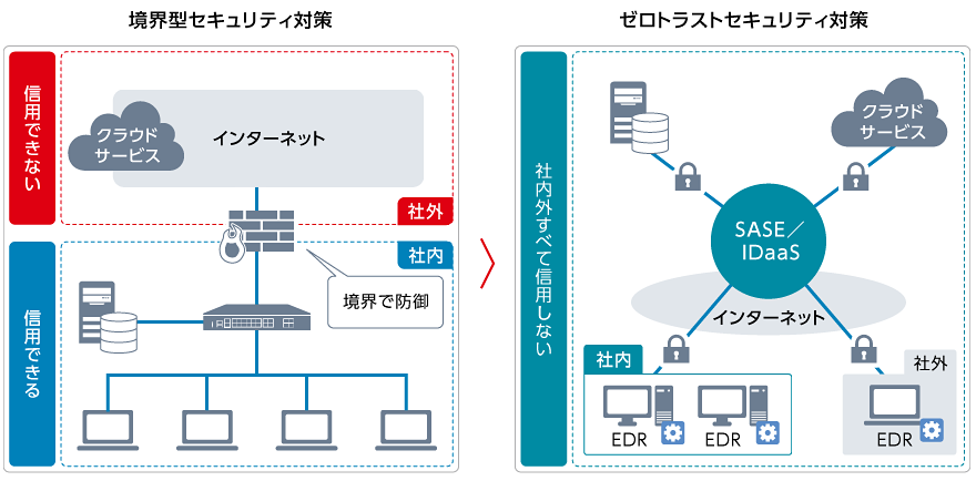| 2 | ネットワークの場所に関係なく、すべての通信を保護する | 社内や自宅、外出先など、場所にかかわらず、すべての通信を保護する | SASE |