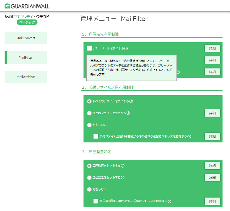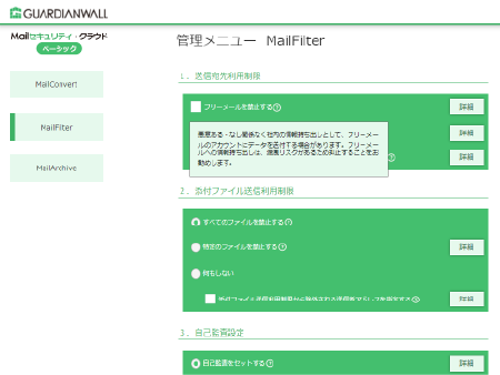 GUARDIANWALL Mailセキュリティ クラウド・ベーシック サービス詳細
