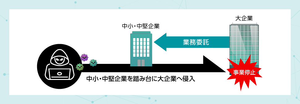 そのため、企業規模の大小に関係なく、大手企業などから業務委託を受けている中小・中堅企業は、十分に標的となり得ます。