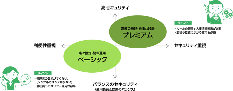 - セキュリティポリシーに沿って設定を実施いただきます。ベーシックは、初期設定が適用されているのですぐにお使いいただけます
