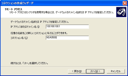 文字列を入力本社の受信 SPIと同じ値 プロトコル ESP ←(本社と同じ) 暗号化 3DES ←(本社と同じ) 認証 SHA1 ←(本社と同じ) 暗号化鍵 任意の0~9、A~Fからなる