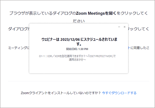配信時間が決まっている[Liveを視聴]コンテンツはZoomにて配信します。