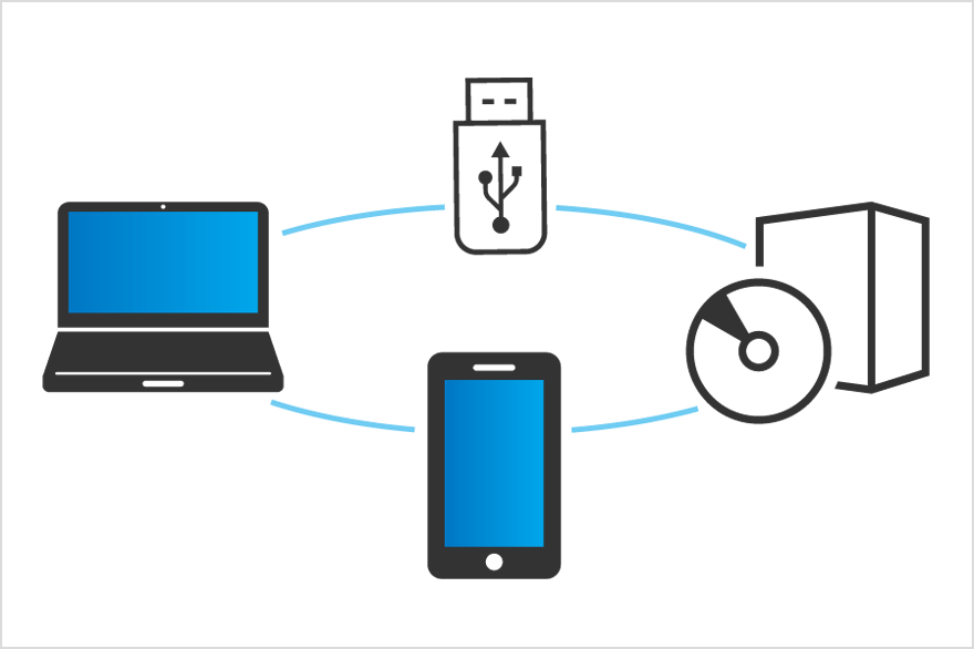 USBメモリ、SDカード、スマートフォンなど、種別ごとに使用不可、読み取り専用、書き込み制限などの設定が可能です。部署ごとやユーザーごとに異なる制限を設定でき、例えばデータのやり取りが多い部署は「読み取り専用」、それ以外の部署は「使用不可」にするなど、柔軟な運用が可能です。また、管理者の承認が必要な場合や、社外で追加・変更されたファイルの持ち込みを制限する機能もあります。デバイスやメディアの適正管理で、個人/機密情報の漏えい防止ができます。