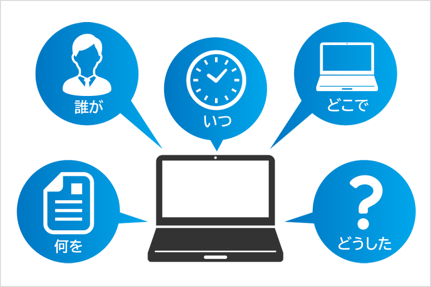 ユーザーのログオン/ログオフ、アプリケーションの起動/終了、ファイルの作成/削除/コピー、ウェブアクセス、メール送信などの操作を記録します。これにより、「いつ」「誰が」「何をしたのか」を正確に把握し、不審な操作や情報漏えいの兆候を早期に発見できます。さらに、操作ログの検索機能を活用することで、特定の操作やイベントを迅速に調査し、問題の原因を特定することが可能です。
