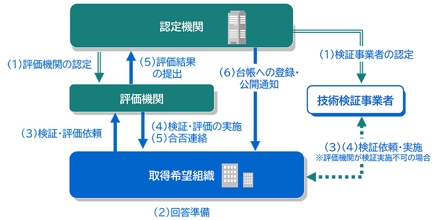(3)取得希望組織は、評価機関または技術検証事業者に検証・評価を依頼する
