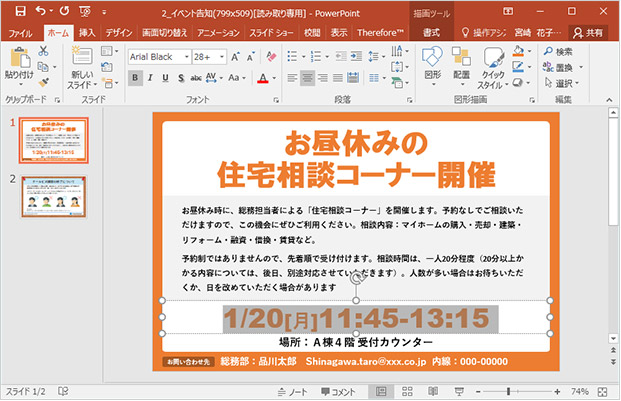 PowerPointのテンプレートファイルをご用意してありますので、Officeで編集し画像ファイルとして保存することにより、簡単に操作パネルの大きさにあった画像ファイルの作成が可能です。