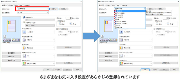 よく使うプリンタードライバー設定をお気に入りに登録する