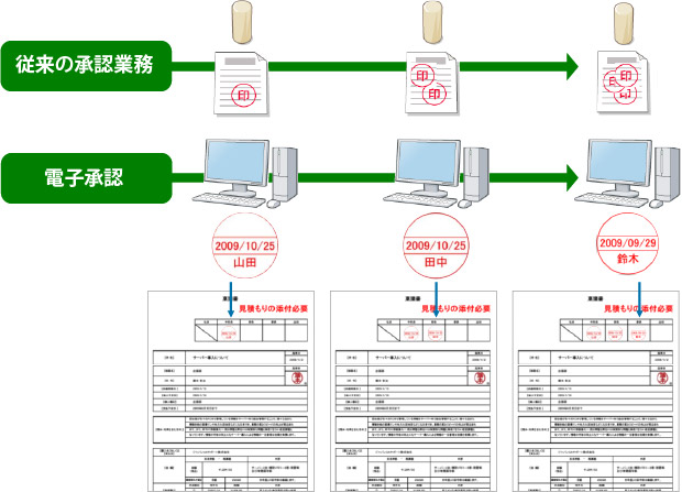 文書を出力して押印した用紙を回覧するよりも、電子印鑑を使用したほうが、はるかにスムーズな承認業務が行えます。