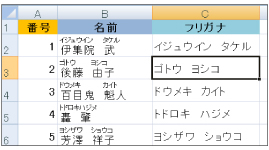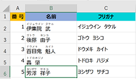 「PHONETIC関数」は、セルに入力されている文字のフリガナを抽出する関数ですが、漢字を入力した際の情報が反映されるため、名前の読み方としては間違っている場合があります。