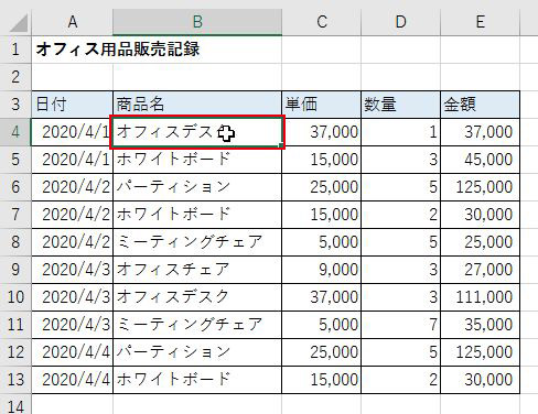 あなたはExcelでオフィス用品の販売記録を管理しています。